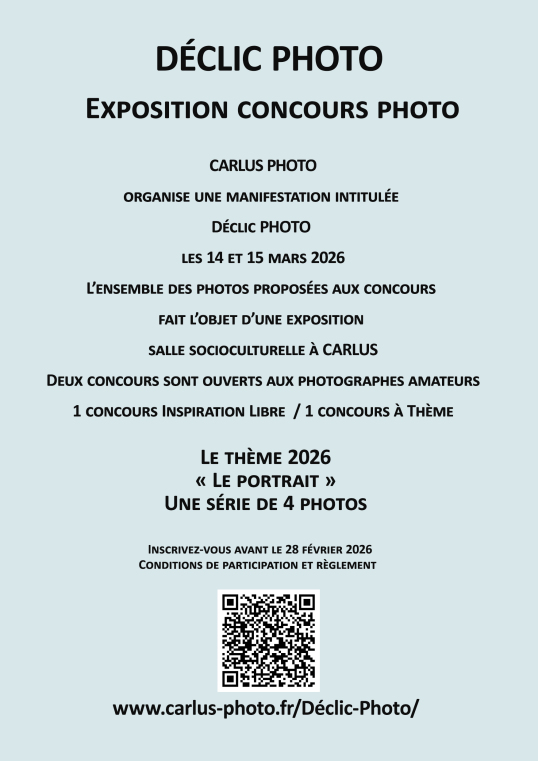 L'édition DÉCLIC PHOTO se déroulera les 14 et 15 mars 2026, salle socioculturelle de CARLUS 81990.